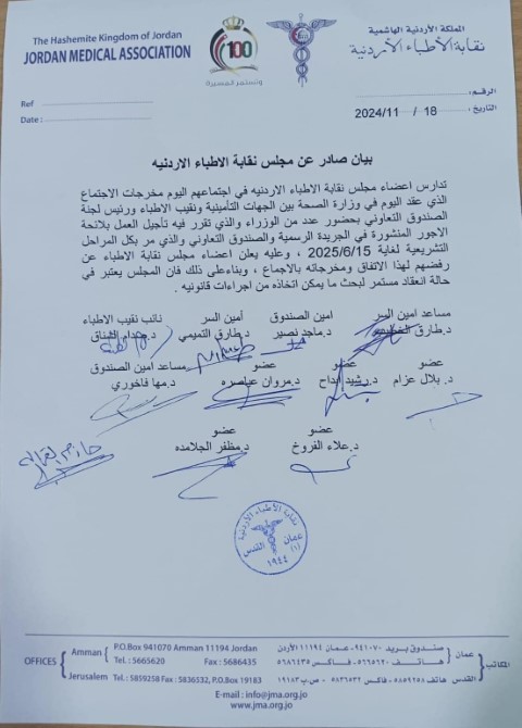 بيان من مجلس نقابة الأطباء بخصوص الأجور .. تفاصيل