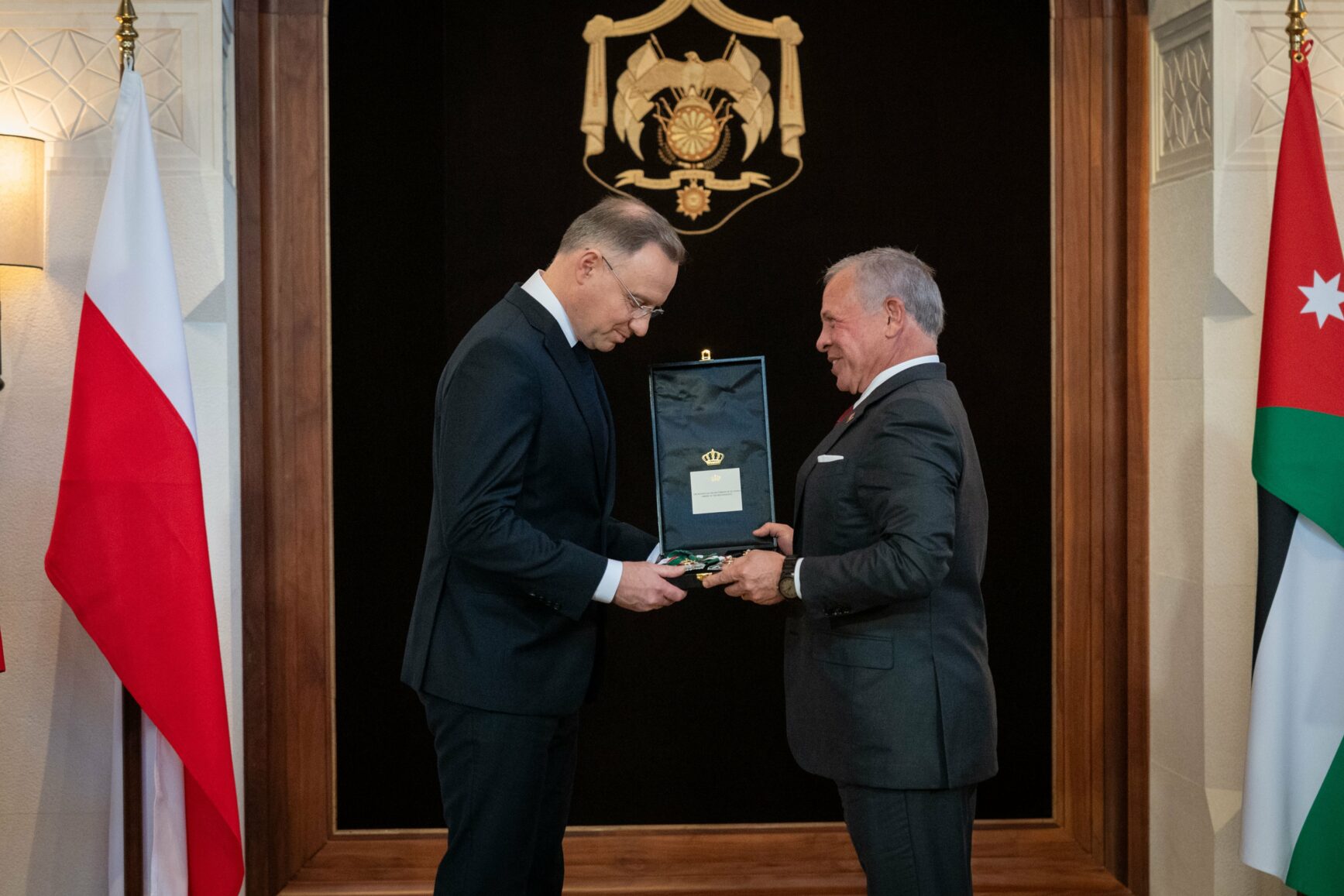 منح جلالة الملك عبدالله الثاني الرئيس البولندي أندريه دودا وسام النهضة المرصع، تقديرا لجهوده في تعزيز علاقات الصداقة بين البلدين، وبمناسبة زيارته للمملكة.