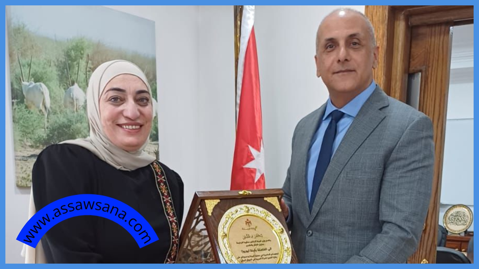 وزير البيئة يكرم الفائزة بالمرتبة الأولى بجائزة التميز للمرأة العربية