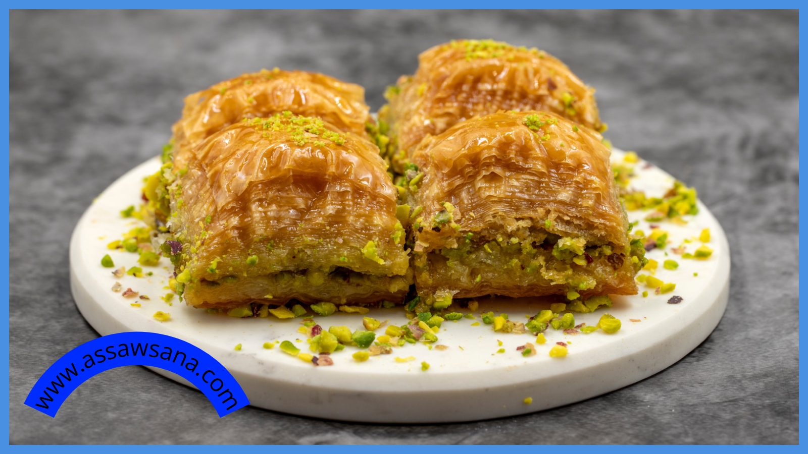 تتكون البقلاوة من طبقات رقيقة من عجينة الفيلو وحشوة غنية بالفستق الحلبي، وتُسقى بالقطر، مما يجعلها حلوى مثالية للتمتع بها في أي وقت.