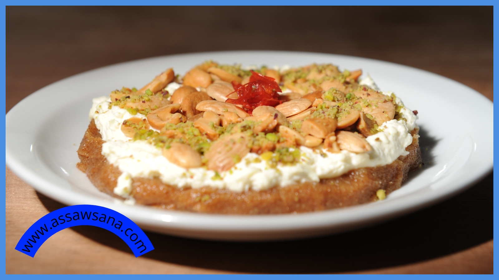 اتركي الخليط ليبرد تمامًا، ثم زيني سطحه بالقشطة والمكسرات المفرومة مثل الفستق الحلبي أو اللوز.