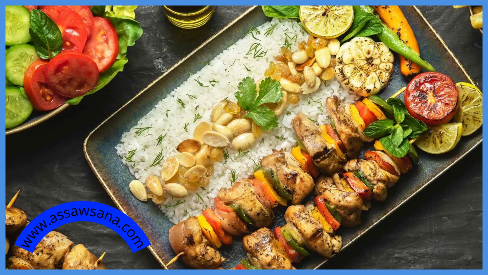 طريقة تحضير شيش طاووق مع الأرز والخضروات