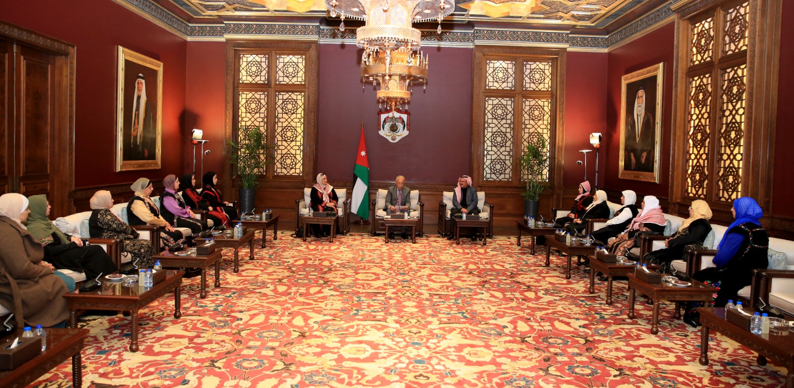 جاء ذلك خلال لقائه في الديوان الملكي الهاشمي، اليوم الخميس، بحضور مستشار جلالة الملك لشؤون العشائر كنيعان البلوي، وفدًا نسائيًا من سيدات الكرك القاطنات في محافظة الزرقاء، ووفدًا يمثل فريق "ملهمون للعمل الشبابي والتطوعي"، في لقاءين منفصلين.