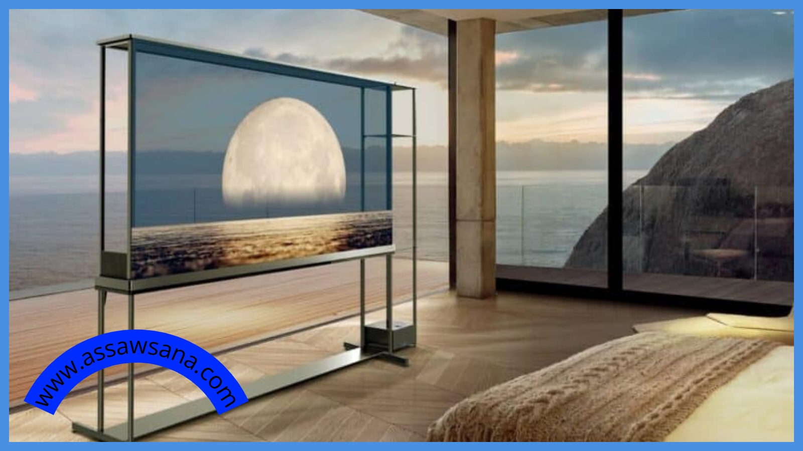يأتي التلفاز بشاشة قياسها 77 إنشًا ويتميز بدعمه للاتصال اللاسلكي للصوت والصورة. يمكن استخدامه أمام النوافذ، حيث يتحول من الوضع الشفاف إلى الوضع المعتم بضغطة زر واحدة، مما يسمح بعرض الصور والمحتوى بشكل ثلاثي الأبعاد في الوضع الشفاف، أو استخدامه كشاشة تقليدية لعرض الأفلام والبرامج.