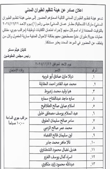 الطيران المدني يدعو مرشحين لامتحان الكفايات .. أسماء