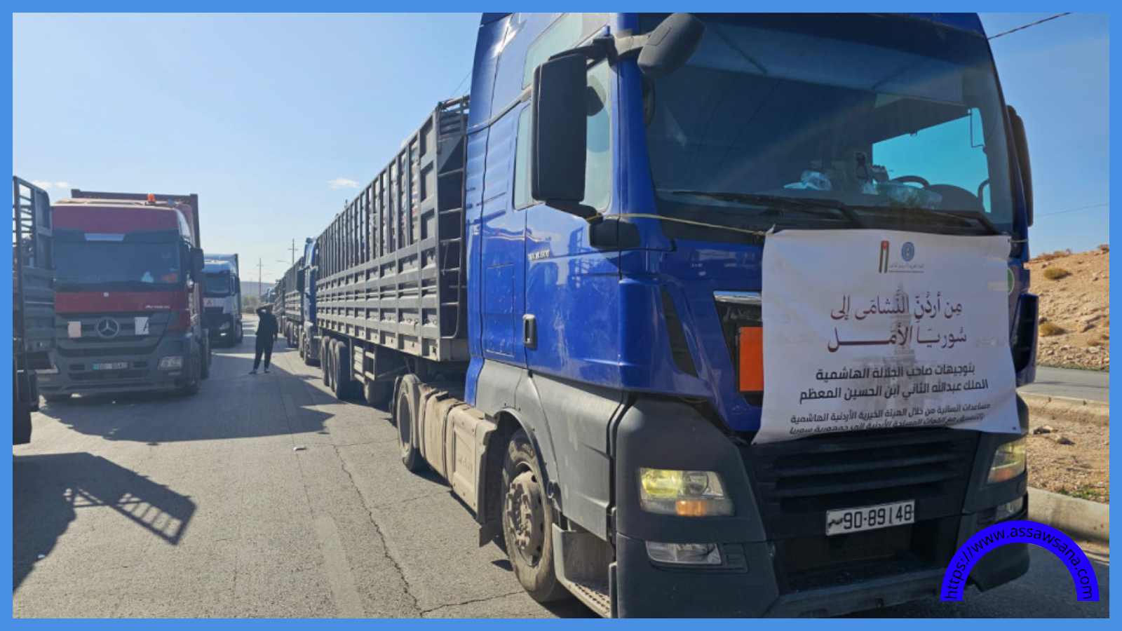 في إطار الجهود المبذولة للوقوف إلى جانب الشعب السوري، وصلت قافلة المساعدات الأردنية الثالثة إلى معبر جابر، الاثنين، لدخولها إلى سوريا.