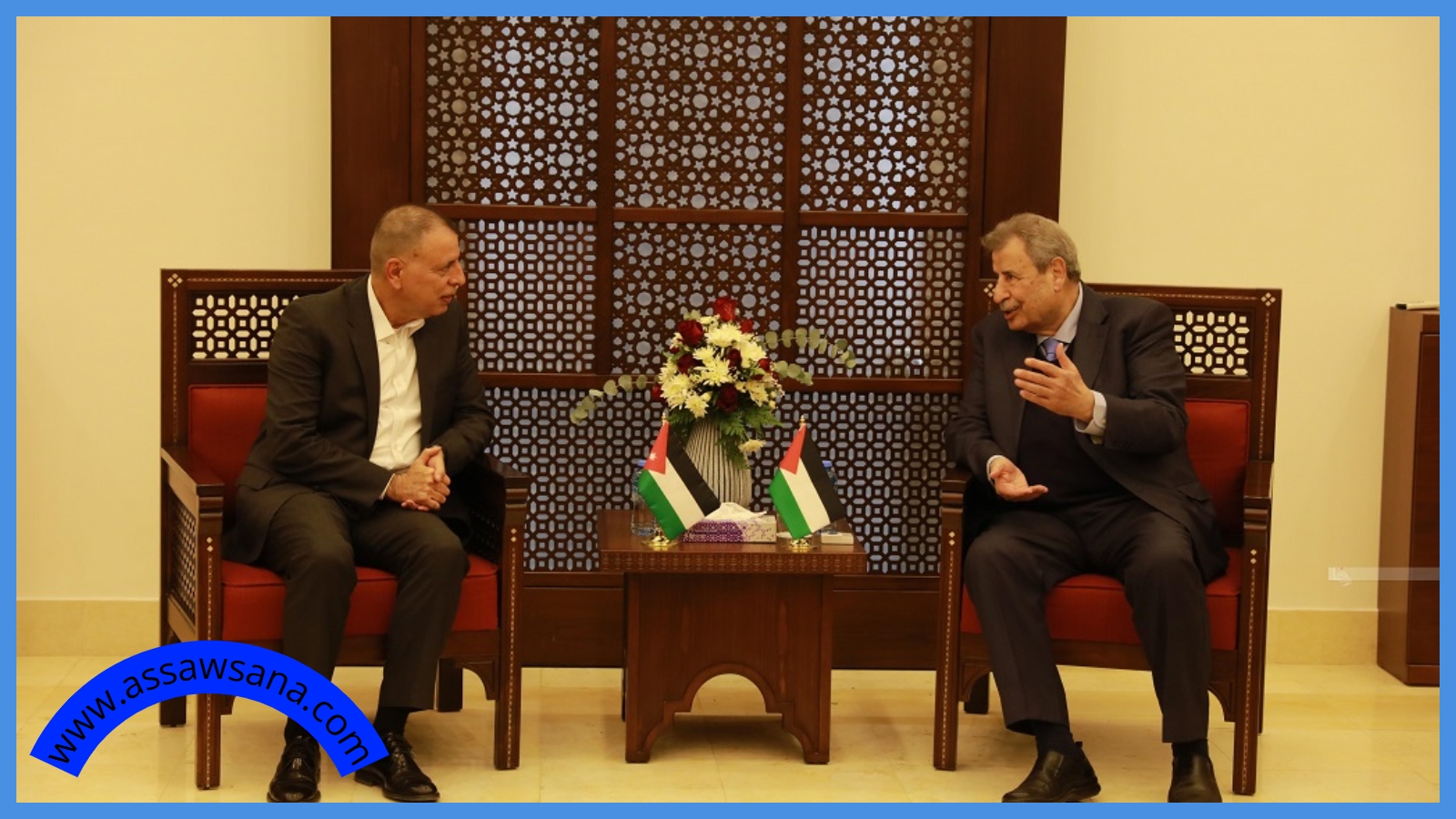 ونقل الفراية تحيات جلالة الملك إلى الرئيس عباس، فيما نقل خوري تحيات الرئيس الفلسطيني لجلالة الملك، ولحكومة الأردن وشعبه.