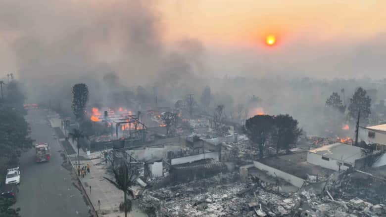لم يتبق سوى الأنقاض في مساحات شاسعة بمناطق من لوس أنجلوس في ولاية كاليفورنيا الأميركية، التي غطى دخان كثيف سماءها، بعد 4 أيام من حرائق الغابات، وسط تحذيرات من تزايد خطورة الوضع نتيجة الرياح العاتية.