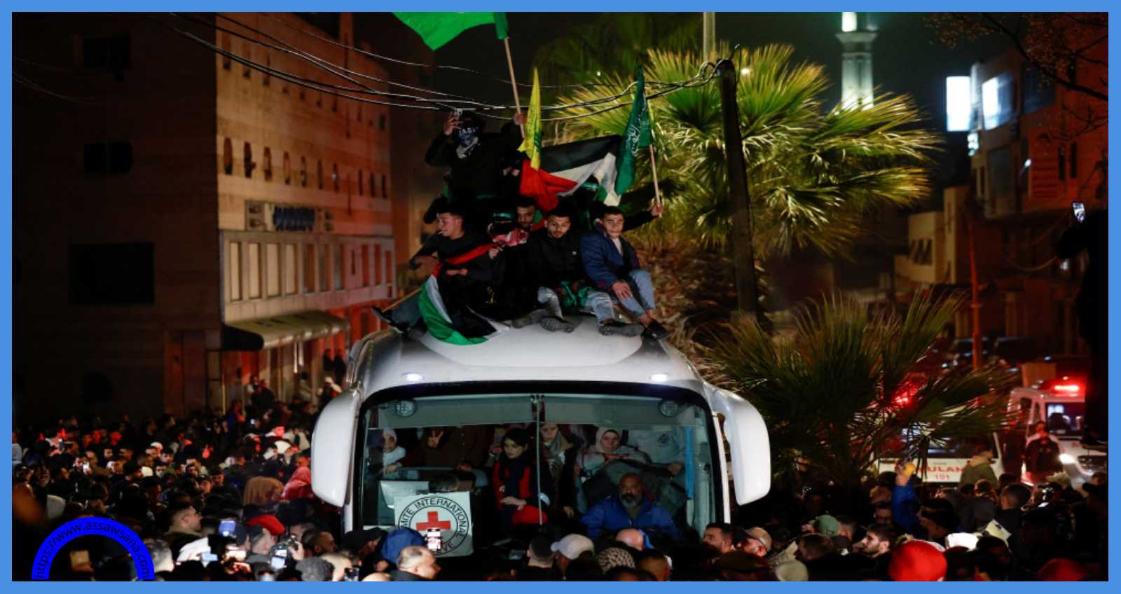 وشوهدت حافلات تحمل شارة اللجنة الدولية للصليب الأحمر، ترافقها مركبات تابعة للجنة، تغادر السجن حاملة الأسرى الفلسطينيين إلى مناطقهم.