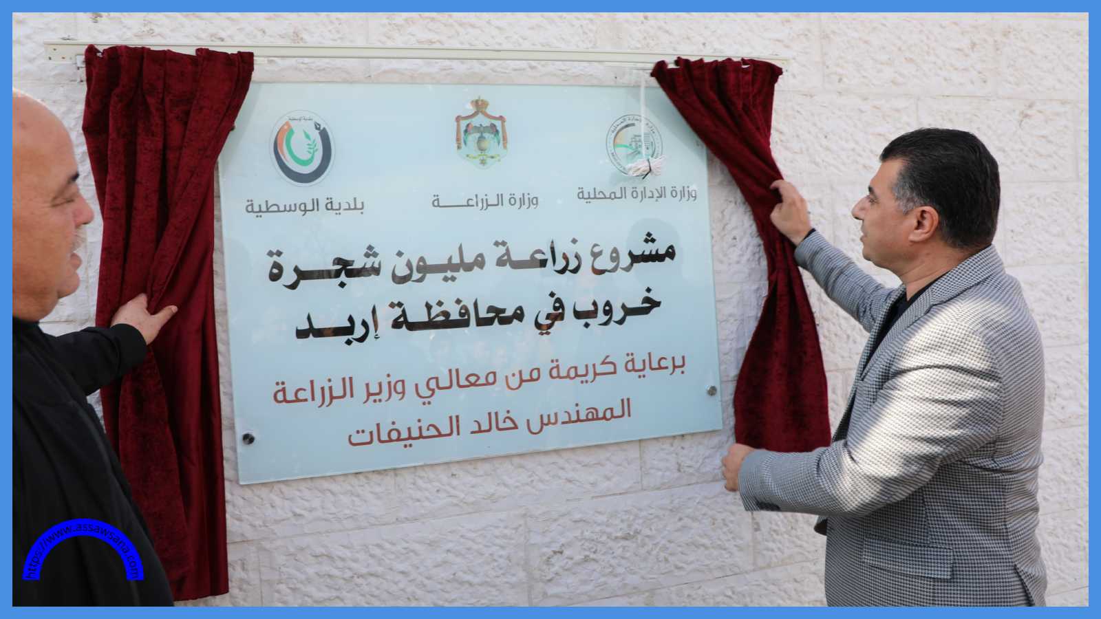 رعى وزير الزراعة المهندس خالد الحنيفات، السبت، احتفال بلدية الوسطية بيوم الشجرة ضمن مشروع "زراعة مليون شجرة خروب في اربد".