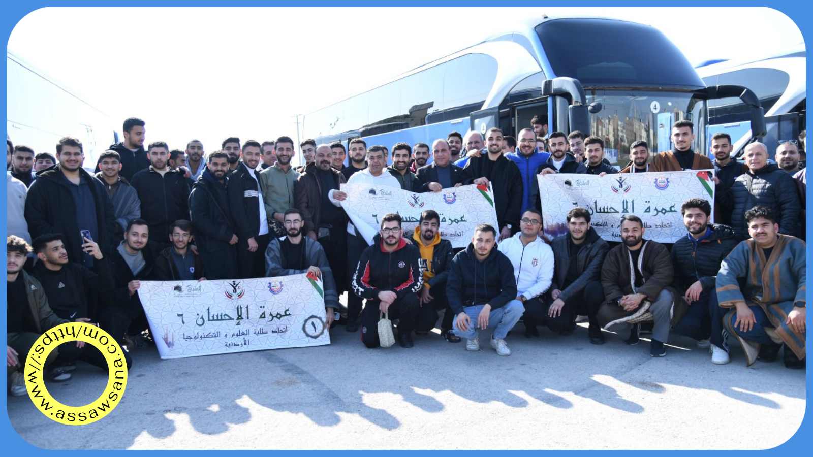 السوسنة - نظّمت جامعة العلوم والتكنولوجيا الأردنية، ممثلةً بعمادة شؤون الطلبة وبالتعاون مع اتحاد طلبة الجامعة، رحلة عمرة (الإحسان 6) إلى الديار المقدسة في المملكة العربية السعودية، بمشاركة عدد من طلبة الجامعة وموظفيها.