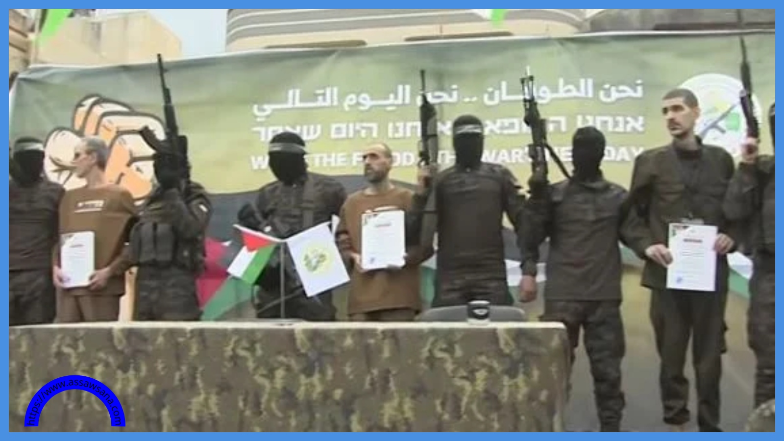 وجرت عملية تسليم المحتجزين الإسرائيليين: أوهاد بن عامي، وإلياهو شرابي، وأور ليفي، في دير البلح بوسط قطاع غزة.
