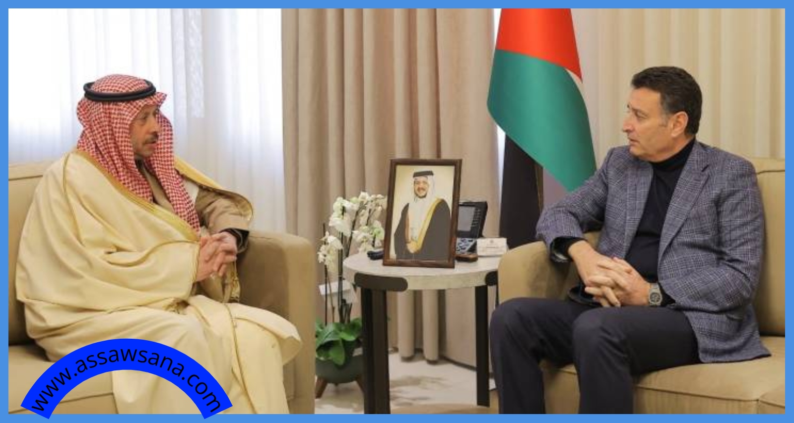 أكد رئيس مجلس النواب أحمد الصفدي والسفير السعودي لدى المملكة نايف بن بندر السديري على عمق العلاقات التي تربط المملكتين بقيادة جلالة الملك عبد الله الثاني وولي عهده سمو الأمير الحسين بن عبد الله الثاني، وخادم الحرمين الشريفين الملك سلمان بن عبد العزيز آل سعود وولي عهده سمو الأمير محمد بن سلمان آل سعود.