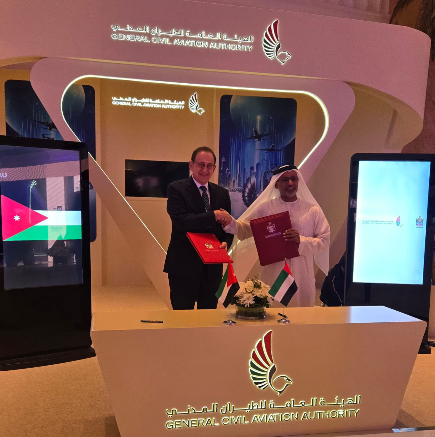 ووقع عن الجانب الأردني، رئيس مجلس مفوضي هيئة تنظيم الطيران المدني هيثم مستو، وعن الجانب الإماراتي مدير عام الهيئة العامة للطيران المدني سيف السويدي.