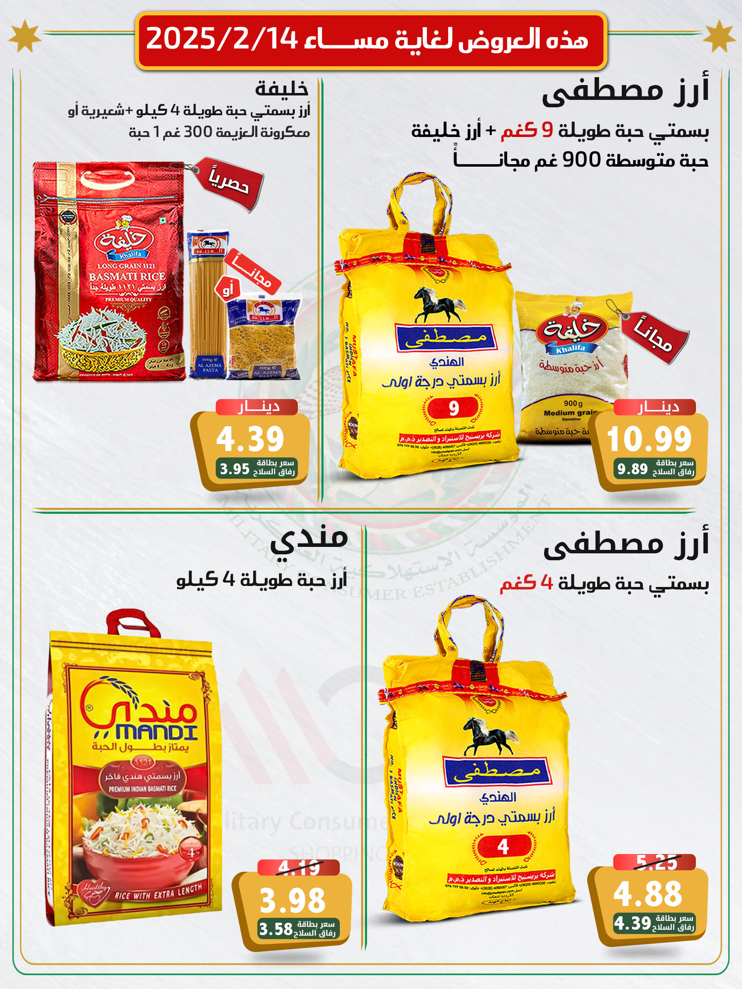 وتستمر العروض التي تلبي احتياجات المواطنين حتى مساء يوم الجمعة الموافق 14 شباط 2025 الحالي أو حتى نفاد الكمية.