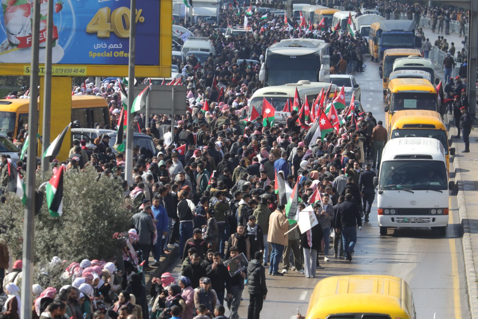 وتوجهت حشود غفيرة من الأردنيين، فجر اليوم الخميس، إلى العاصمة عمان للمشاركة في الاستقبال الحاشد للملك عبد الله الثاني القادم من العاصمة الأمريكية واشنطن.