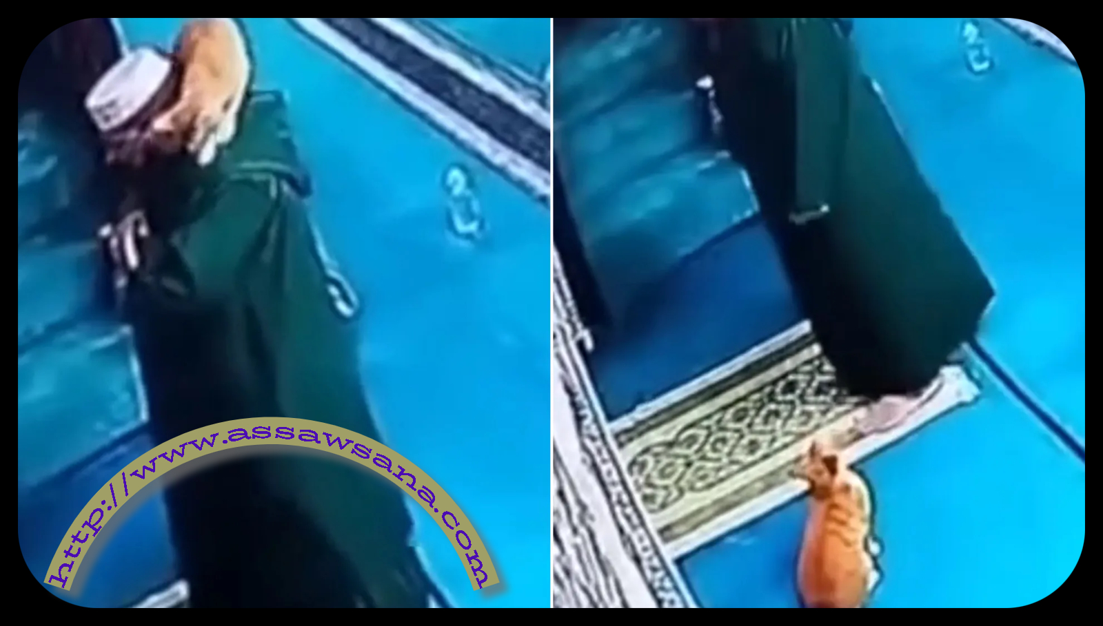 ووثّقت كاميرا المراقبة في مسجد الشيخ إبراهيم التازي بمدينة وهران القطة وهي داخل المسجد وتحوم حول الإمام، أثناء تأديته الصلاة.