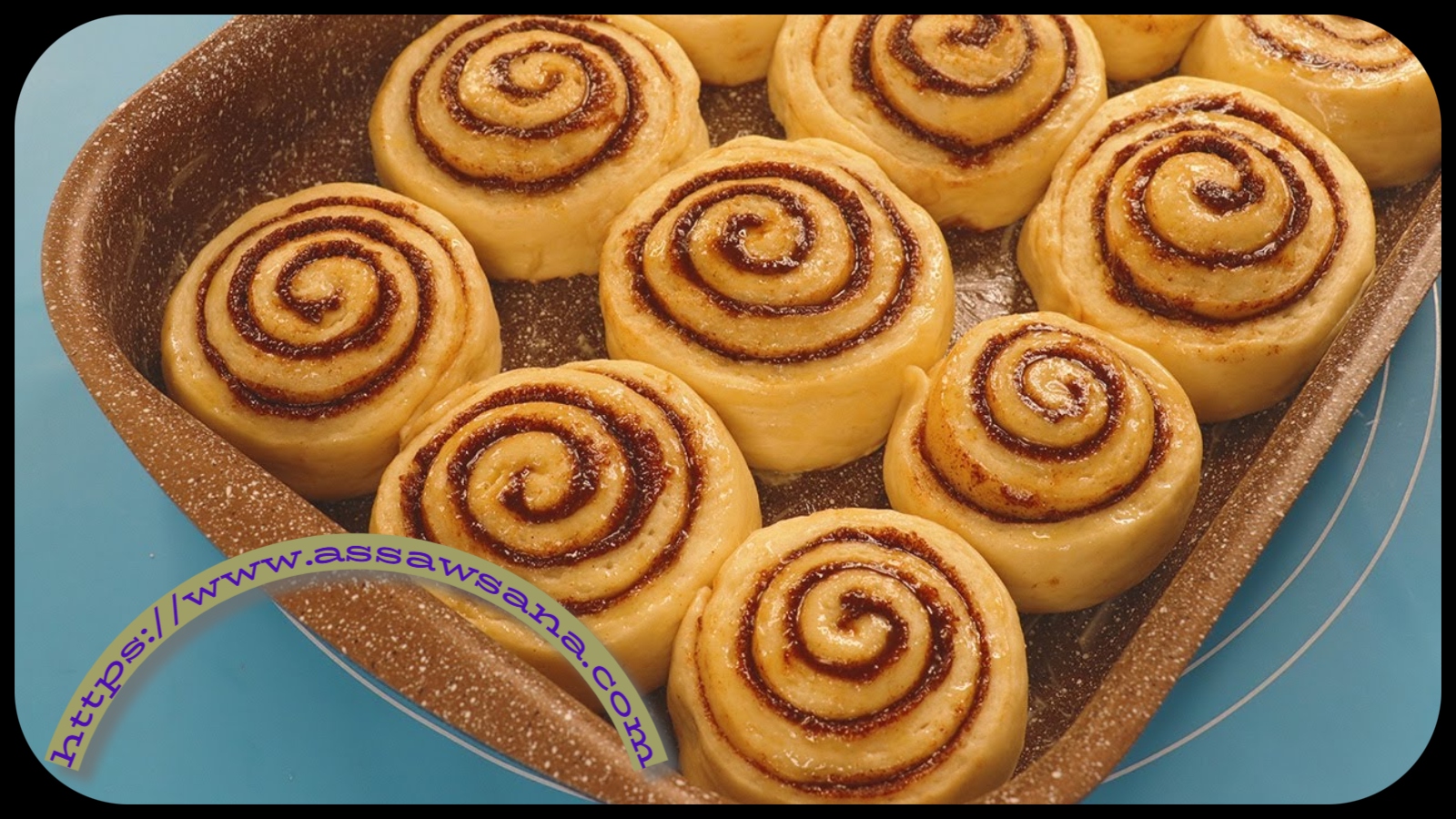 - أدخلي الصينية إلى الفرن واتركيها لمدة 20-25 دقيقة حتى تصبح السينابون ذهبية اللون.