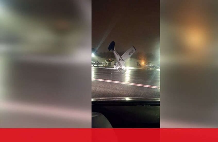 انقلاب طائرة في البرتغال بسبب الرياح القوية .. فيديو