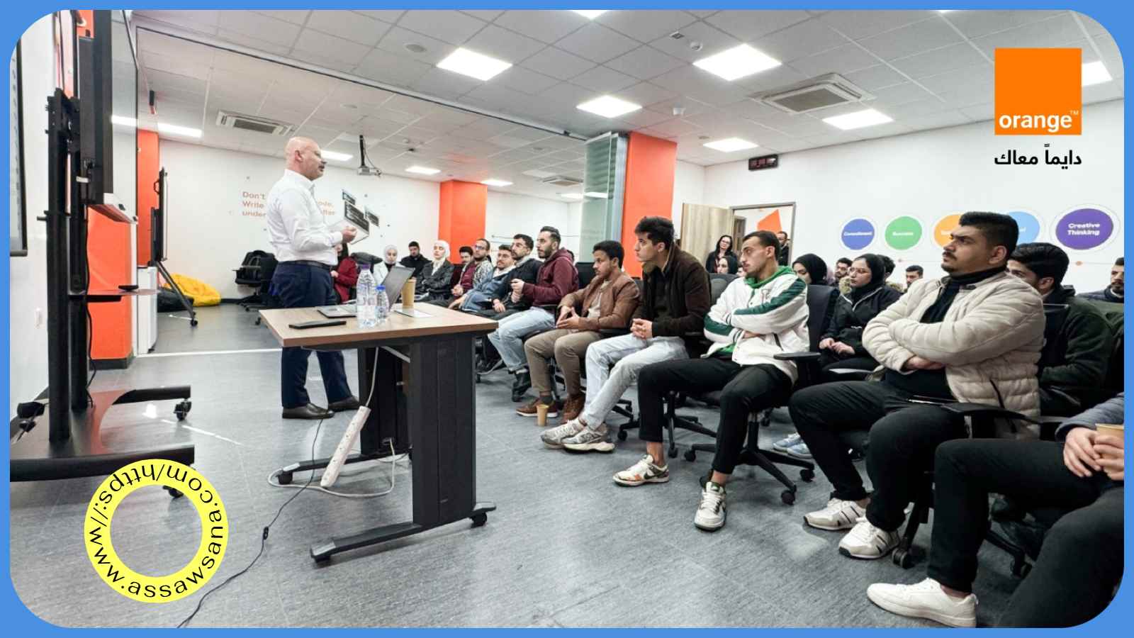 السوسنة - نظمت أورنج الأردن ورشة عمل تحت عنوان "بناء نموذج الأعمال والريادة والابتكار في مجال تكنولوجيا المعلومات" لأكثر من 50 طالبة وطالباً من أكاديمية البرمجة عمّان، المنفذة تحت مظلة مراكز أورنج الرقمية.