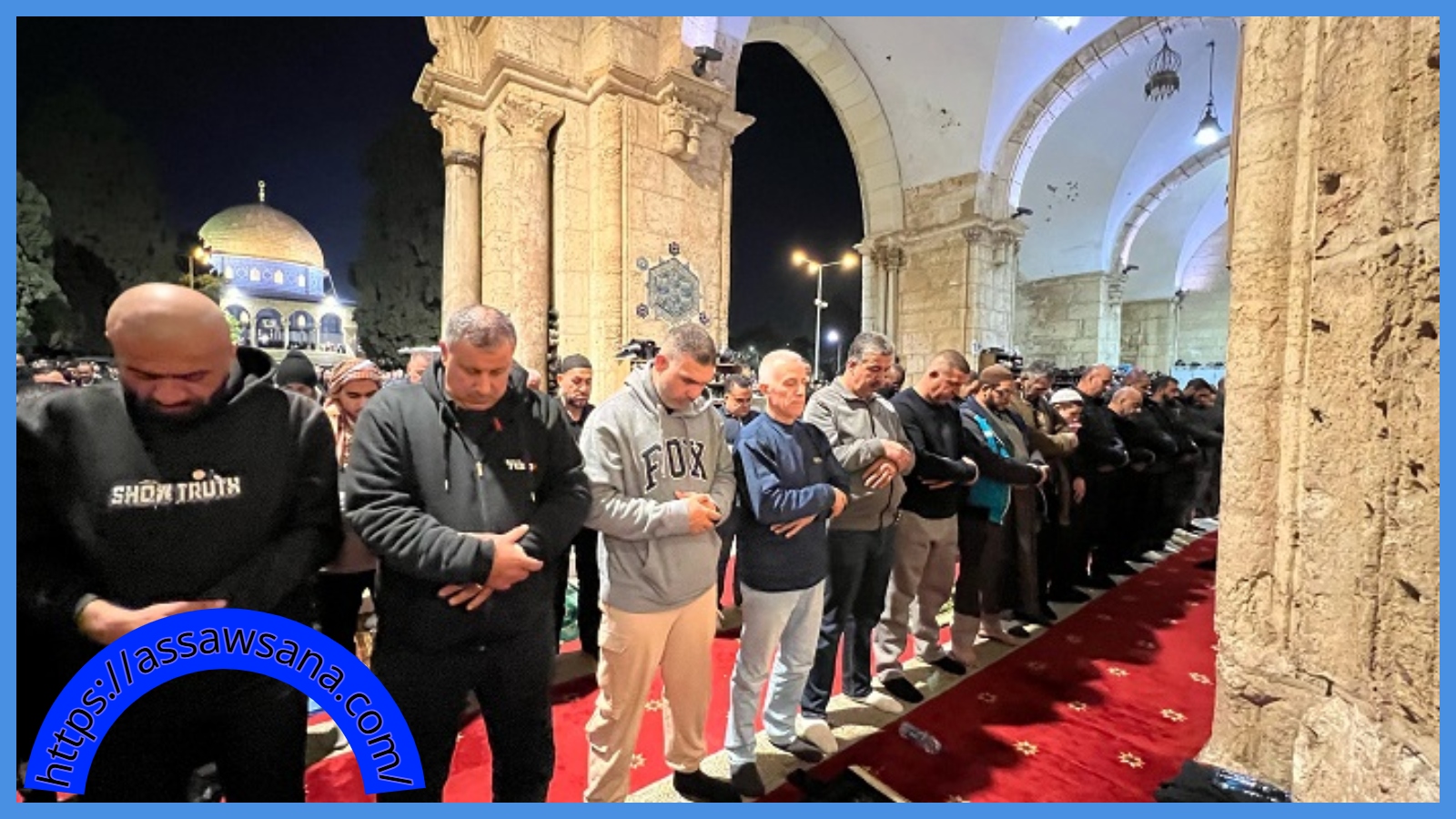 وقدّرت دائرة الأوقاف الإسلامية في القدس أن “أكثر من 100 ألف أدوا صلاتي العشاء والتراويح في رحاب المسجد الأقصى”، غالبيتهم من أبناء المدينة المقدسة ومن داخل أراضي عام 1948، إذ تمنع سلطات الاحتلال آلاف المواطنين من محافظات الضفة الغربية من الوصول إلى القدس لأداء الصلاة في المسجد الأقصى .