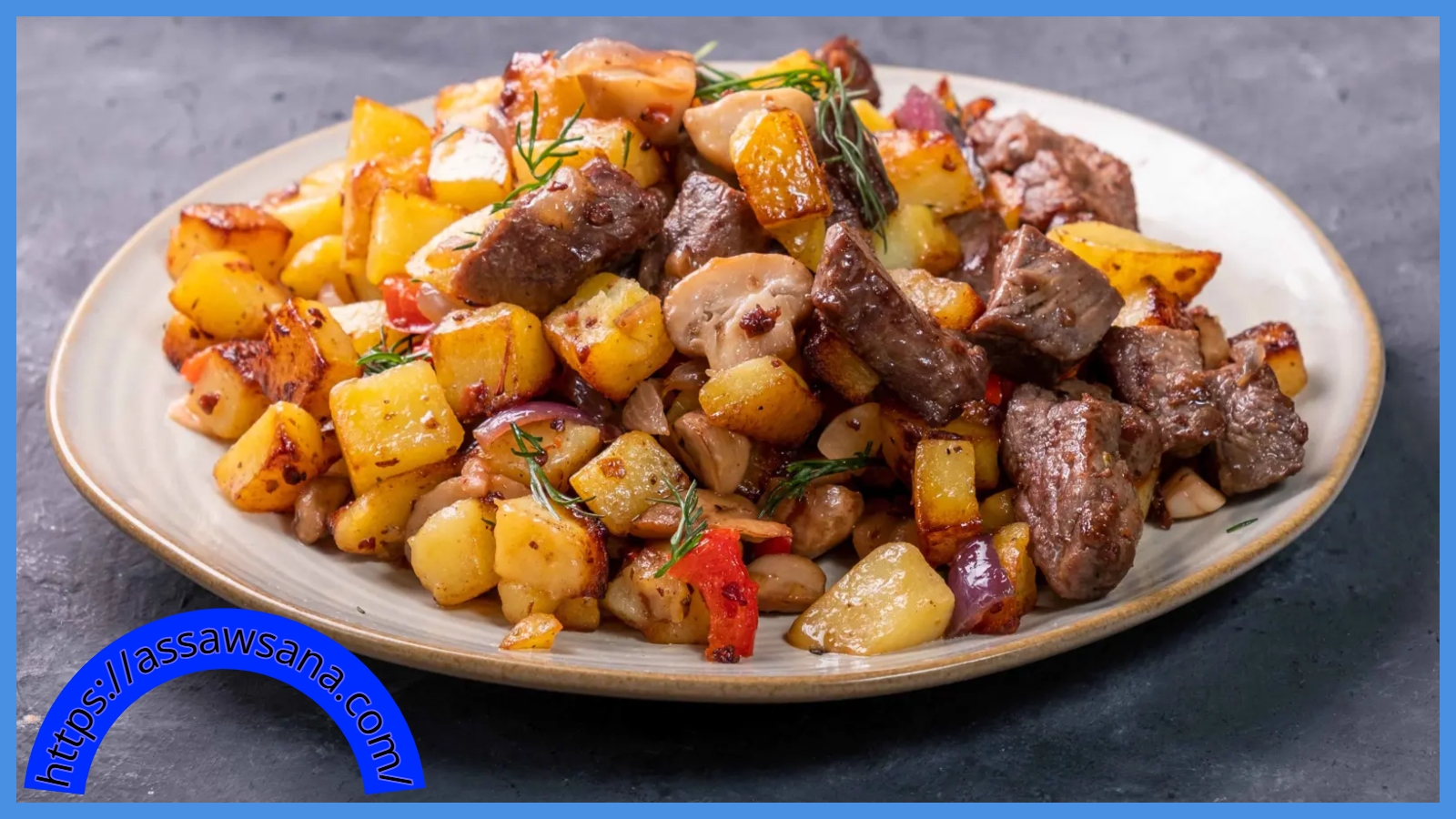 وصفة "مكعبات البطاطا باللحم والفطر"