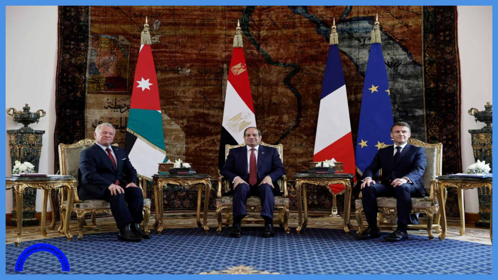 أجرى جلالة الملك عبدالله الثاني والرئيس المصري عبدالفتاح السيسي، والرئيس الفرنسي إيمانويل ماكرون، اتصالا هاتفيا مشتركا، الاثنين، مع الرئيس الأميركي دونالد ترمب، وذلك على هامش القمة الثلاثية الأردنية المصرية الفرنسية بالقاهرة.