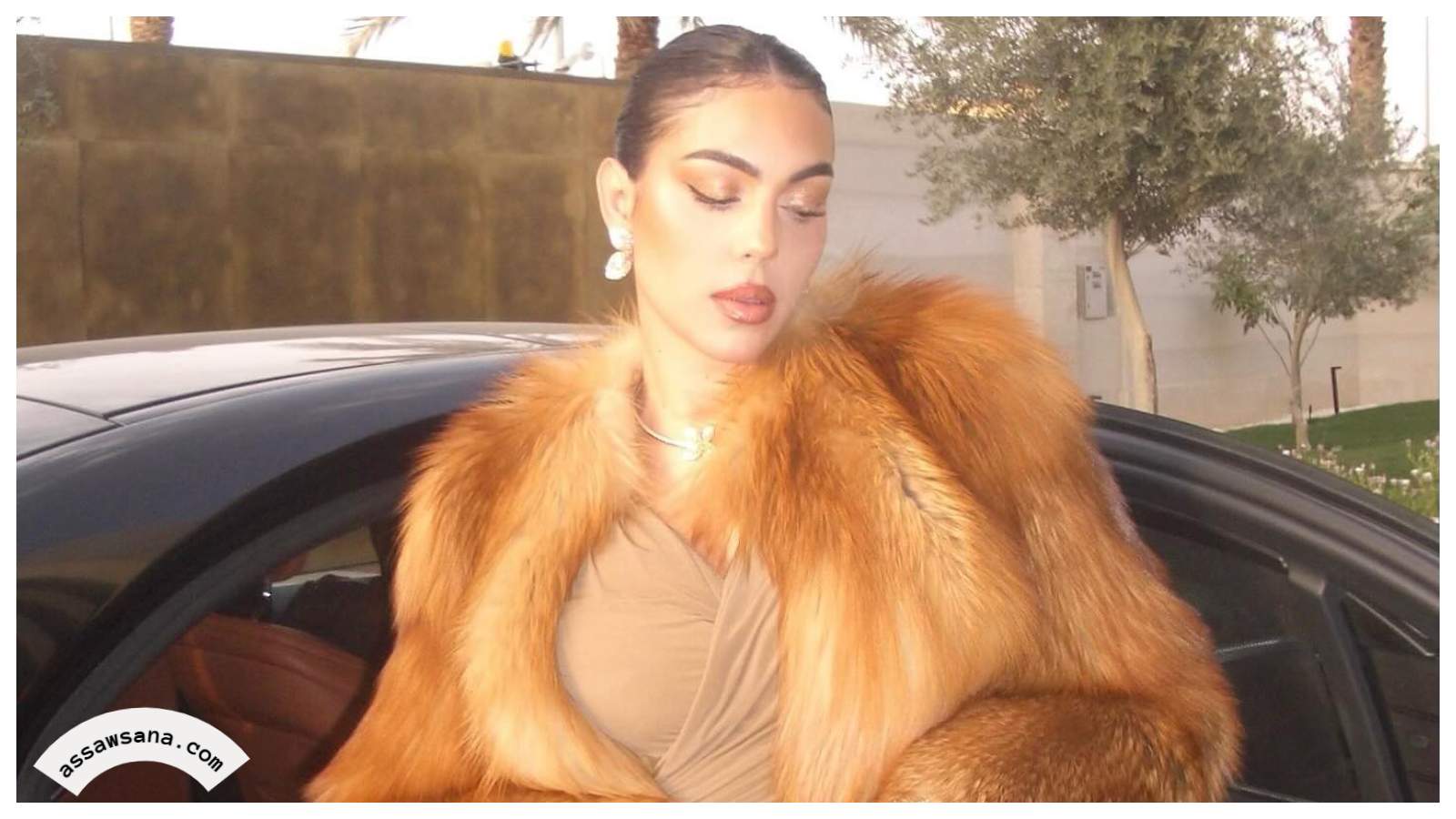 كما ظهرت بجانب كريستيانو رونالدو بفستان نيود قصير ومجسم، أضافت إليه معطفًا أسود طويلًا بأكمام واسعة، ليمنحها إطلالة أنيقة ومتميزة.