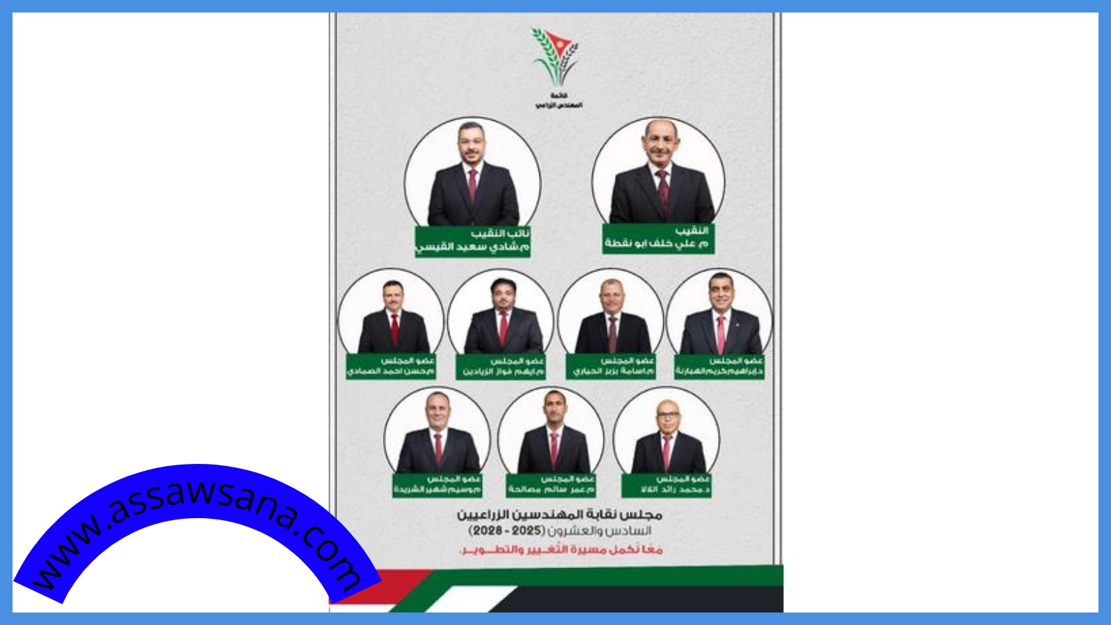 وهنأ العدوان النقيب وأعضاء المجلس الجديد على ثقة الهيئة العامة، مشيرًا إلى أن الفوز بالتزكية يعكس حالة من التوافق والانسجام بين المهندسين الزراعيين.