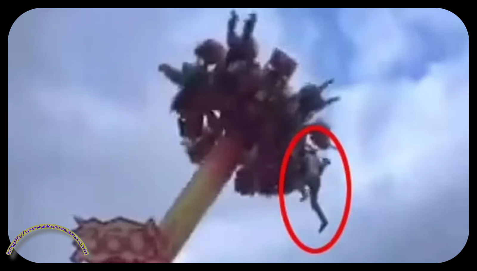 ومع بدء سقوط "البندول"، انزلق الصبي بوضوح من مقعده، ويمكن رؤيته معلقًا على قضيب حديدي يصارع الموت بينما تستمر اللعبة في الدوران.