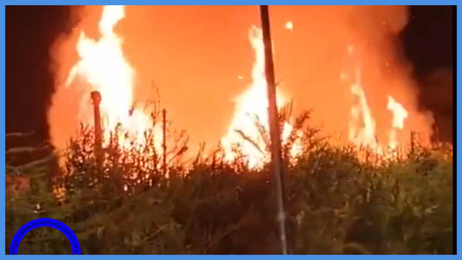 ووثق ناشطون عبر مواقع التواصل الحريق بعدة فيديوهات.