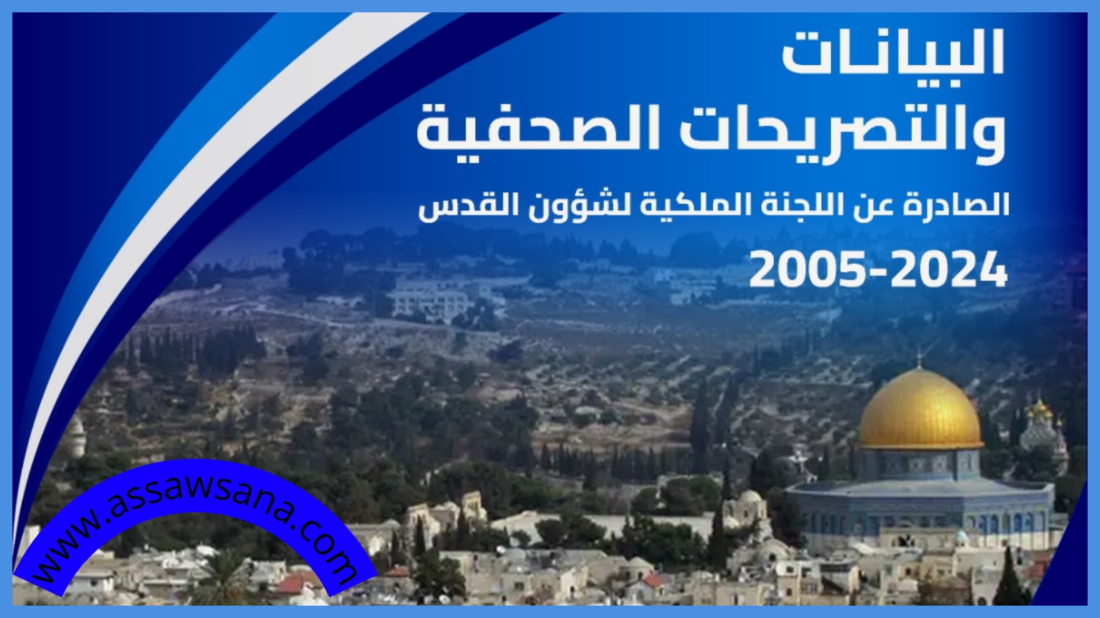 صدر حديثا عن اللجنة الملكية لشؤون القدس، كتابا جديدا يوثق البيانات والتصريحات الصحفية الصادرة عن اللجنة الملكية لشؤون القدس خلال الفترة من 2005 و حتى 2024، في مجلدين الأول من 2005 –2021، والثاني من 2022 – 2024.