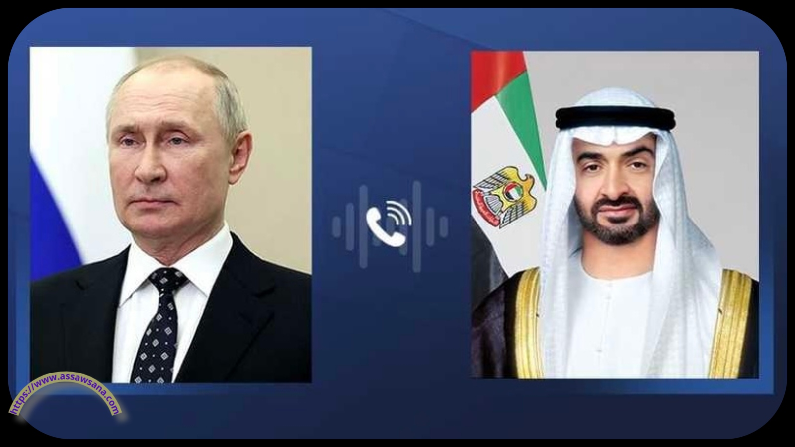 السوسنة- أجرى الشيخ محمد بن زايد آل نهيان، رئيس دولة الإمارات، اتصالًا هاتفيًا مع الرئيس الروسي فلاديمير بوتين، جرى خلاله بحث العلاقات الثنائية بين البلدين وسبل تعزيزها ضمن إطار الشراكة الإستراتيجية القائمة.