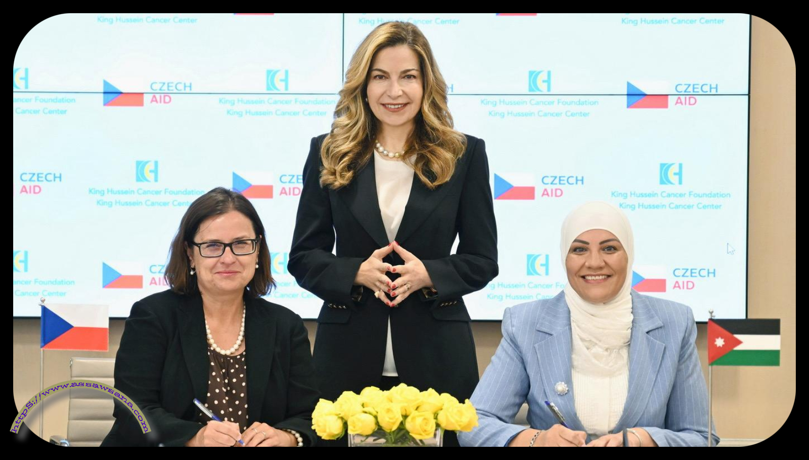 وقّعت الاتفاقية السيدة سيلفا بافلاسوفا القائمة بالأعمال بالإنابة في سفارة جمهورية التشيك في الأردن، والسيدة نسرين قطامش، مدير عام مؤسسة الحسين للسرطان.