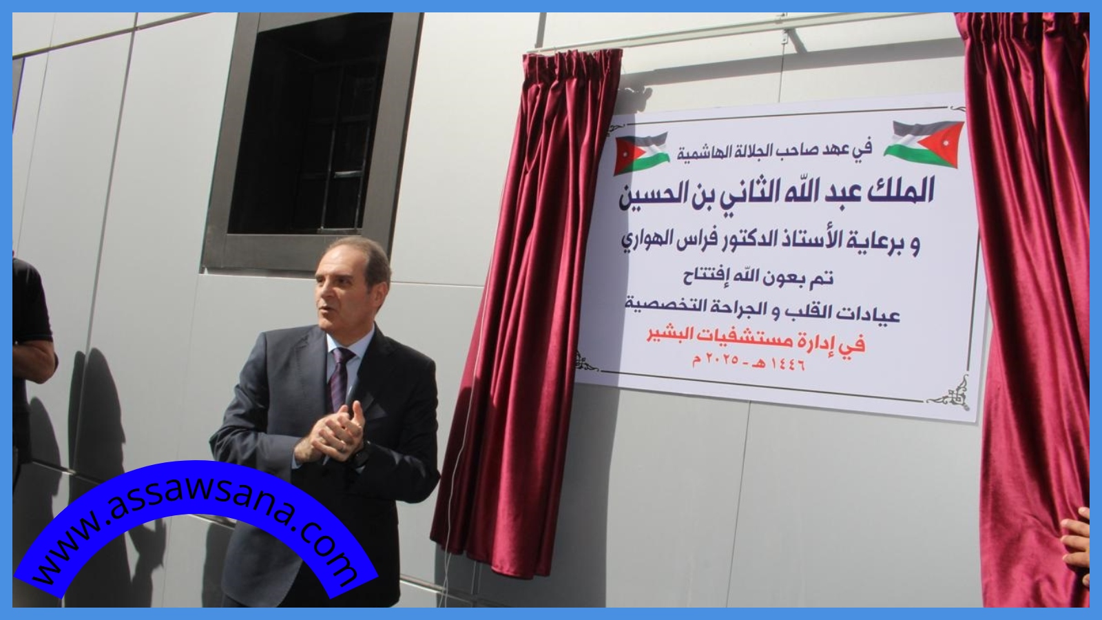 افتتح وزير الصحة الدكتور فراس الهواري الثلاثاء، عيادات القلب والجراحات التخصصية في مستشفيات البشير، في خطوة جديدة تؤكد التزام الوزارة المستمر بتطوير الخدمات الطبية المتخصصة وتوسيع نطاقها، بما يتناسب مع الزيادة المطردة بأعداد المرضى ورفع جودة الرعاية الصحية المقدمة في مرافق الوزارة.