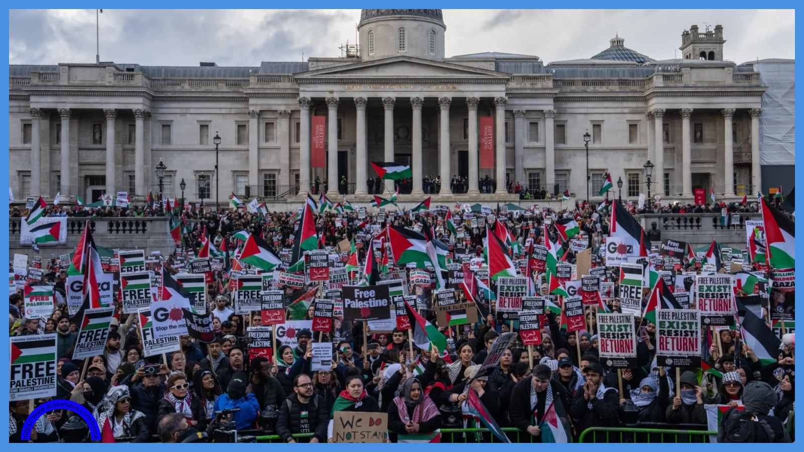 ووصل المتظاهرون من مختلف أنحاء المملكة المتحدة، بما في ذلك مناطق نائية، مثل ويلز وشمال إنجلترا، مرددين هتافات تدعو إلى إنهاء الاحتلال ورفع الحصار عن غزة.
