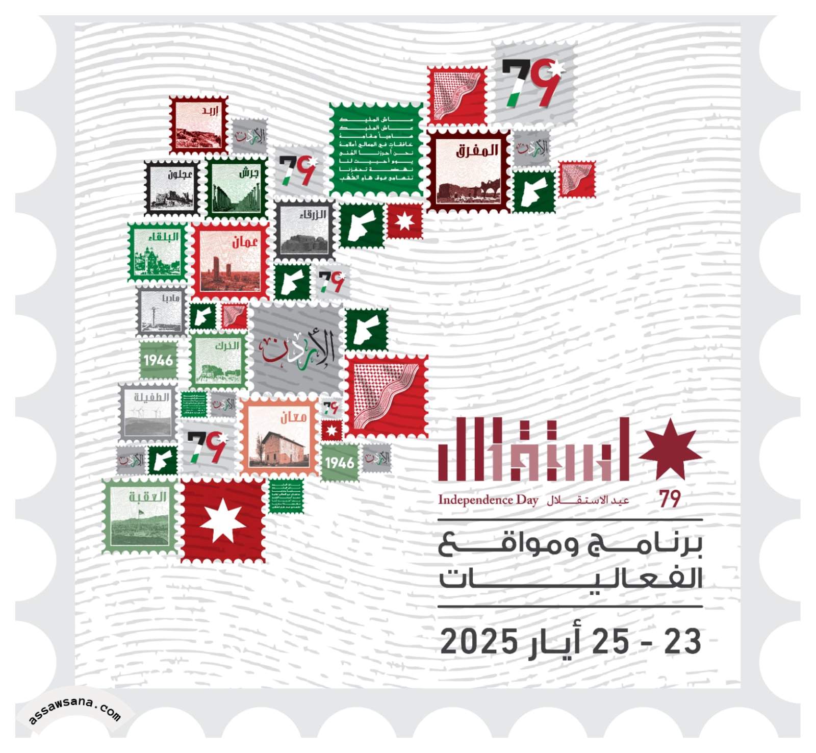 السوسنة - أعلنت وزارة الثقافة عن فعاليات برنامج الاحتفال بعيد الاستقلال التاسع والسبعين، في العاصمة والمحافظات، والتي ستبدأ يوم 23 وحتى 25 من الشهر الحالي.
