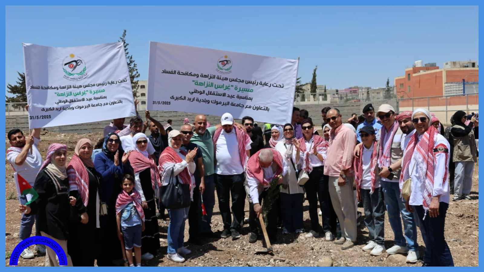 ضمن احتفالات المملكة بعيد الاستقلال التاسع والسبعين، أطلقت هيئة النزاهة ومكافحة الفساد السبت مبادرة بعنوان "غراس النزاهة" بالتعاون مع جامعة اليرموك، بهدف تعزيز الانتماء والولاء الوطني لدى الشباب، من خلال ربط العمل التطوعي بالاحتفال بالاستقلال.