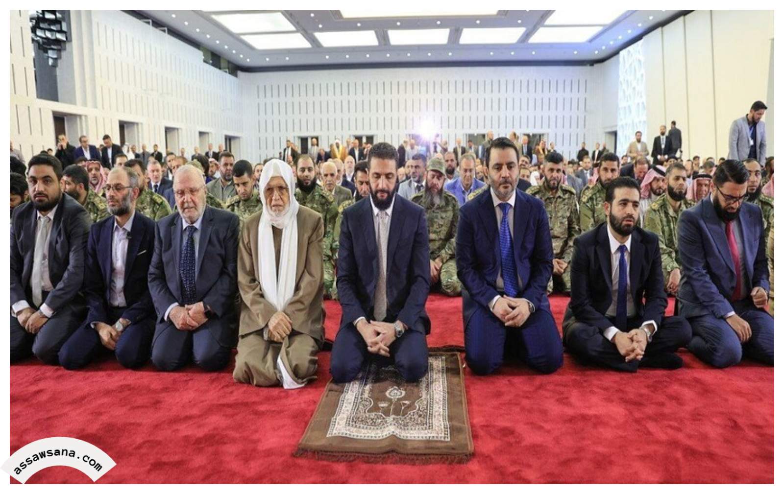 السوسنة - أثار ظهور الرئيس السوري أحمد الشرع وهو يصلي على سجادة منفردة ومزركشة خلال صلاة عيد الأضحى، خلافًا لباقي المصلين الذين اصطفوا على "الموكيت" الأحمر الموحد، جدلاً واسعًا على مواقع التواصل الاجتماعي، تباينت فيه الآراء بين التحليل السياسي والسخرية وحتى الدفاع عن سلوك الرئيس.