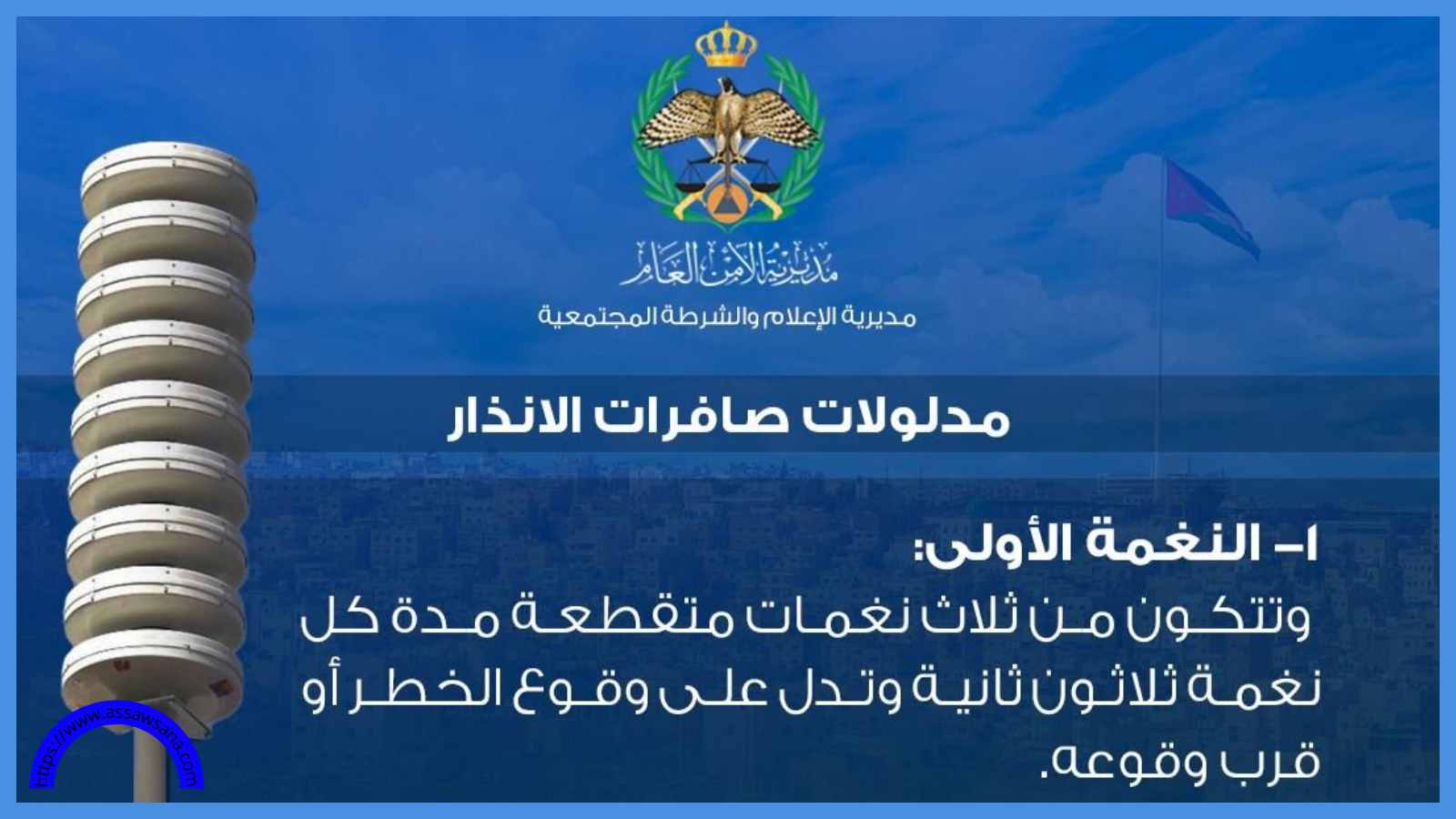 في إطار تعزيز وعي المواطنين بالإجراءات التي يجب اتباعها عند سماع صافرات الإنذار، أوضحت مديرية الأمن العام مدلولات الصافرات التي تُستخدم في حالات الطوارئ.
