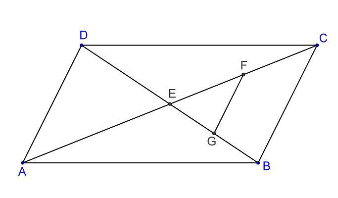تقسيم متوازي الأضلاع إلى مثلّثين من خلال رسم قطر يصل بين زاويتين متقابلتين فيه.