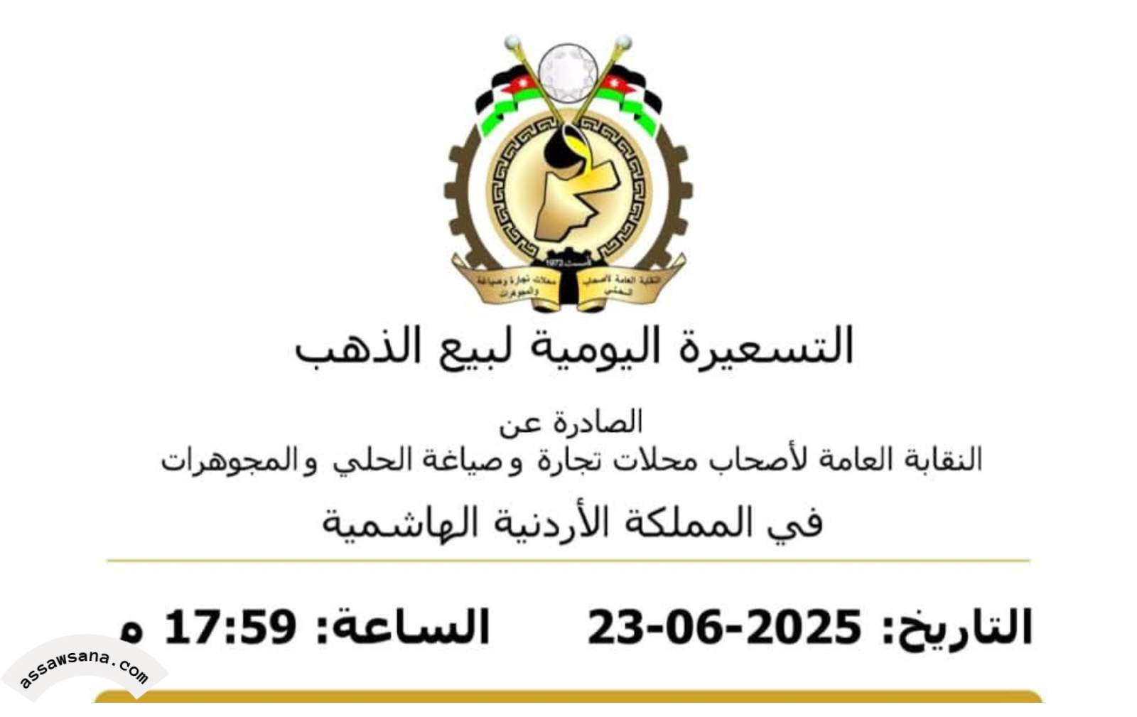 السوسنة - شهدت أسعار الذهب في السوق المحلي الأردني مساء الاثنين، 23 حزيران 2025، ارتفاعًا طفيفًا مقارنة بتسعيرة صباح اليوم الصادرة عن نقابة أصحاب محلات تجارة وصياغة الحلي والمجوهرات.