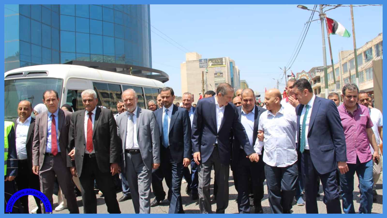 وكانت المسيرة بمشاركة واسعة من المواطنين، وطلبة المدارس والجامعات والأندية الرياضية ،إضافة إلى ممثلين عن الأجهزة الأمنية والرسمية.