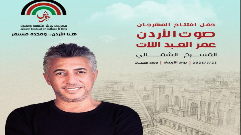 السوسنة - اختارت إدارة "مهرجان جرش للثقافة والفنون"، "صوت الأردن" الفنان عمر العبداللات، ليكون نجم حفل افتتاح دورة المهرجان التاسعة والثلاثين، وذلك يوم الأربعاء 23/7/2025، الذي يقام هذا العام تحت شعار: "هنا الأردن .. ومجده مستمر".
