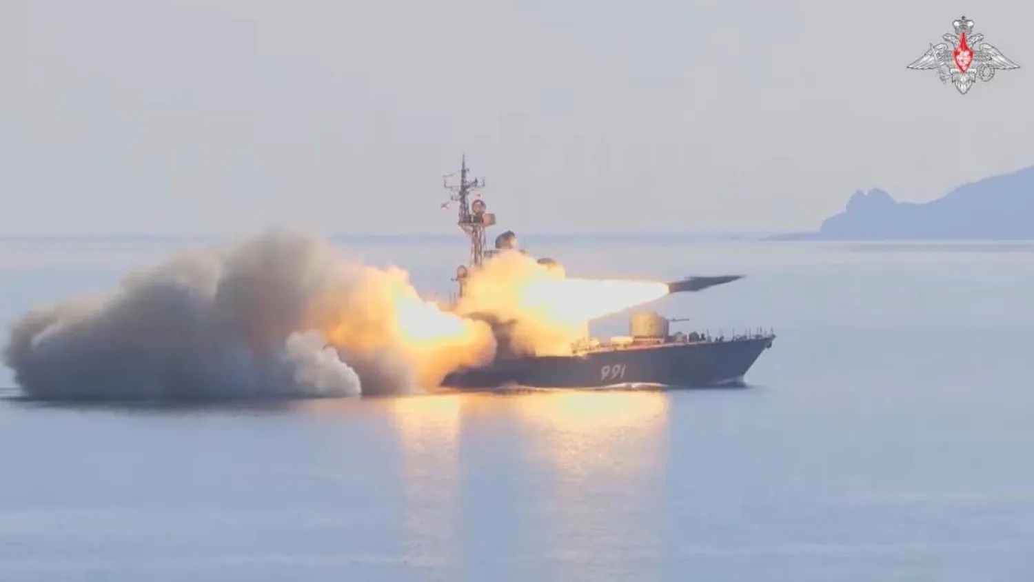 وقالت «تاس» إن سفينة الأسطول الرئيسية، الطراد الصاروخي فارياج جاردز، نفذت إطلاقاً حياً لصاروخ كروز مضاد للسفن من طراز «فولكان»، كما هاجمت مجموعتان من زوارق الصواريخ أهدافاً بأربعة صواريخ كروز من طراز «موسكيت».