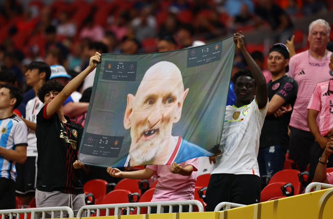 السوسنة - أقدمت جماهير فريق أتلانتا يونايتد الأمريكي على رفع لافتات مسيئة بحق الأرجنتيني ليونيل ميسي، خلال مباراة إنتر ميامي أمام باريس سان جيرمان في دور الـ16 من كأس العالم للأندية 2025.