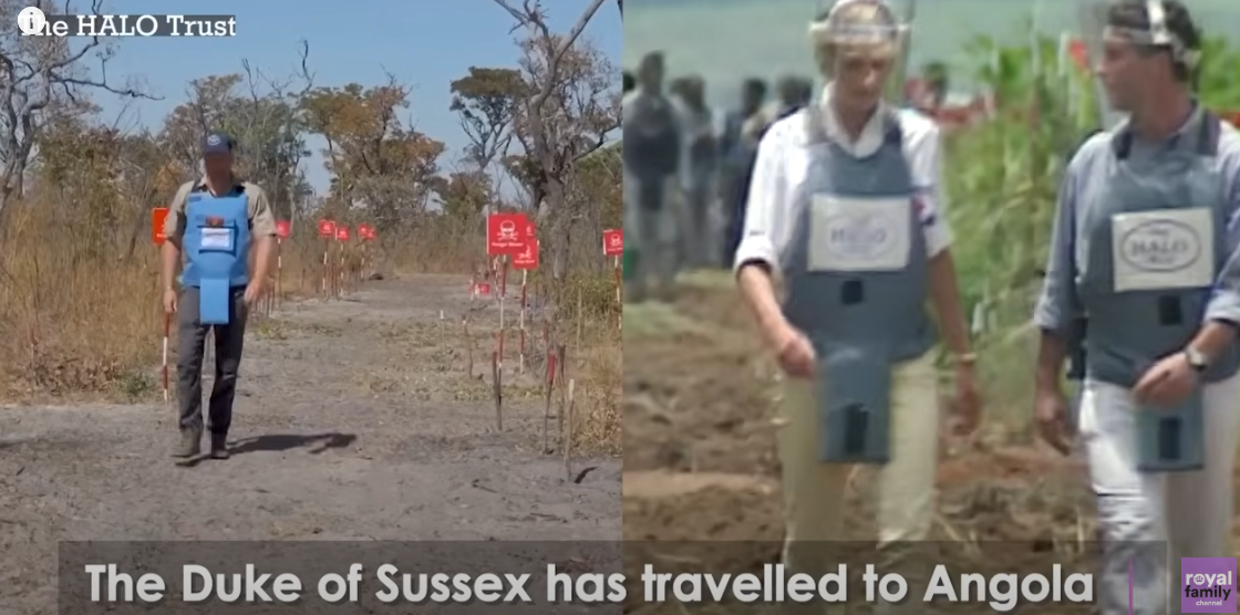 وجاءت زيارة الأمير ضمن إطار برنامج التوعية المجتمعية التابع لمؤسسة HALO البريطانية، التي تُعنى بإزالة الألغام من مناطق النزاع، حيث تدعم هذه الزيارة جهود المؤسسة التي تعمل في أنغولا منذ عقود لإزالة الألغام الأرضية التي خلفتها الحرب الأهلية التي استمرت أكثر من 20 عامًا وانتهت رسميًا في عام 2002. وقد أسفرت هذه الجهود عن إزالة أكثر من 120 ألف لغم و100 ألف قنبلة من مختلف أنحاء البلاد.