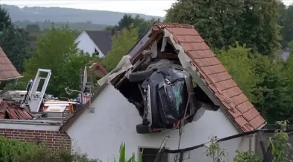 سيارة تطير فوق ترامبولين وتصطدم بمنزل في ألمانيا