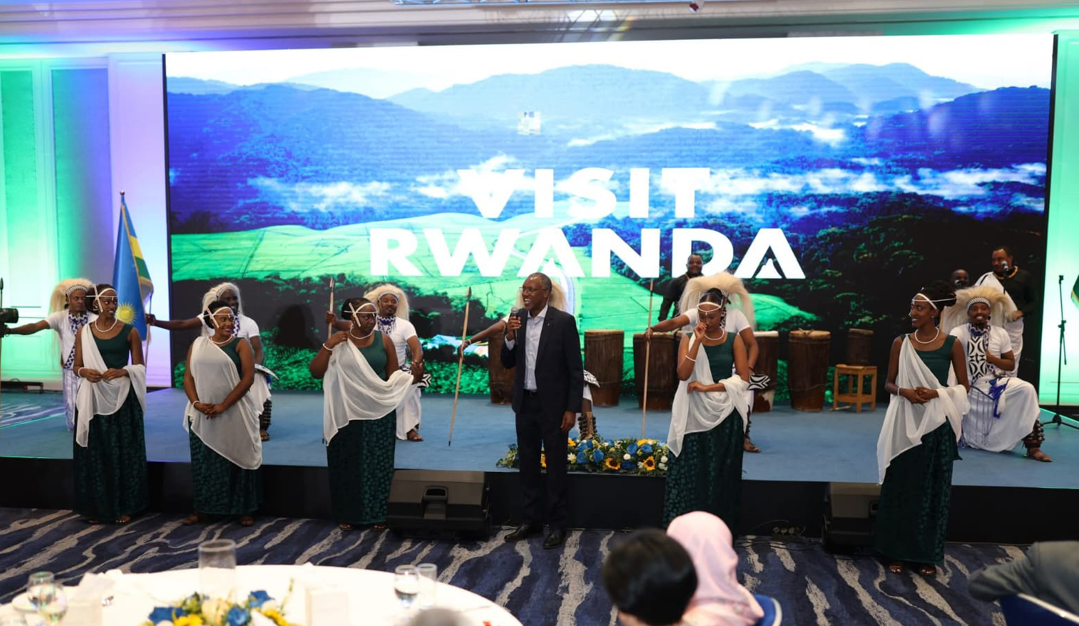استضافت سفارة جمهورية رواندا في عمان، مساء أمس الاثنين، أمسية تقليدية في فندق جراند حياة عمان، قدمت خلالها الفرقة الوطنية الرواندية للفنون الشعبية "أوروكيريريزا" عرضا فنيا مميزا، عقب مشاركتها التاريخية في مهرجان جرش للثقافة والفنون على المسرح الشمالي في 26 تموز الحالي.