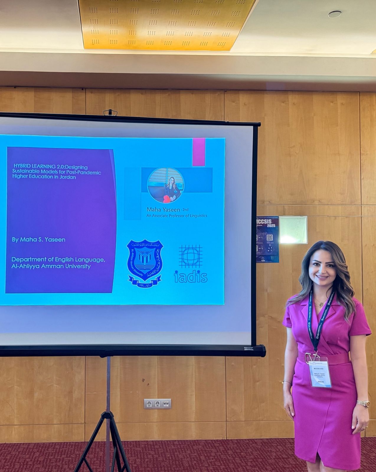 شاركت جامعة عمان الأهلية، ممثلة بالدكتورة مها ياسين من قسم اللغة الإنجليزية بكلية الاداب والعلوم في أعمال المؤتمر الدولي التاسع عشر للتعلّم الإلكتروني والتعلّم الرقمي (ELDL 2025) ، الذي عُقد مؤخرًا في العاصمة البرتغالية لشبونة، ضمن فعاليات المؤتمر المتعدد للعلوم الحاسوبية ونظم المعلومات (MCCSIS) ، بتنظيم من الجمعية الدولية لتطوير مجتمع المعلومات (IADIS) .